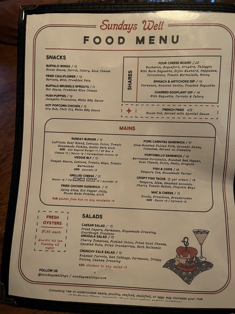 With an inviting ambiance, excellent service, and a menu that encourages exploration, Sundays Well promises a satisfying experience for everyone.